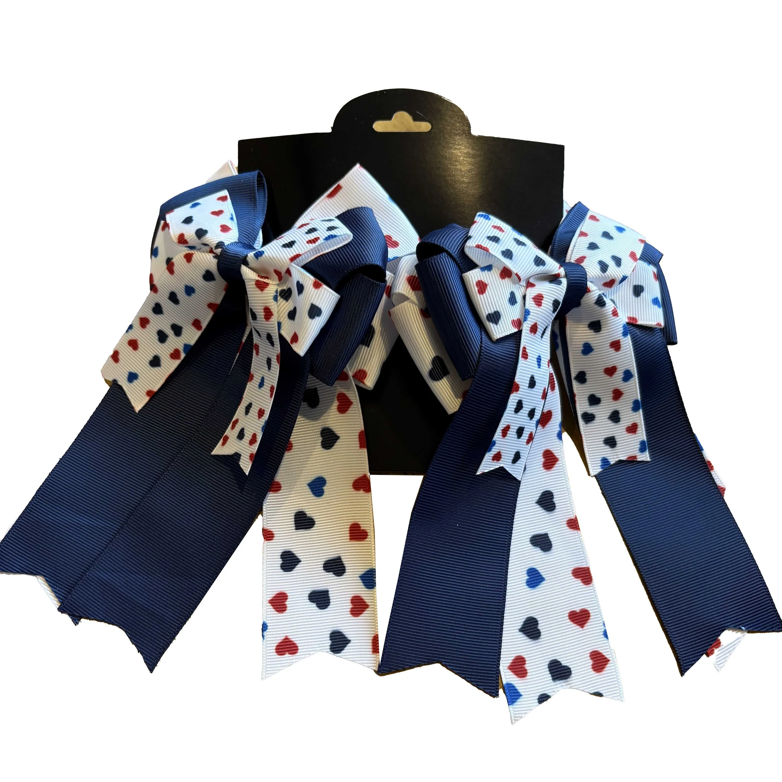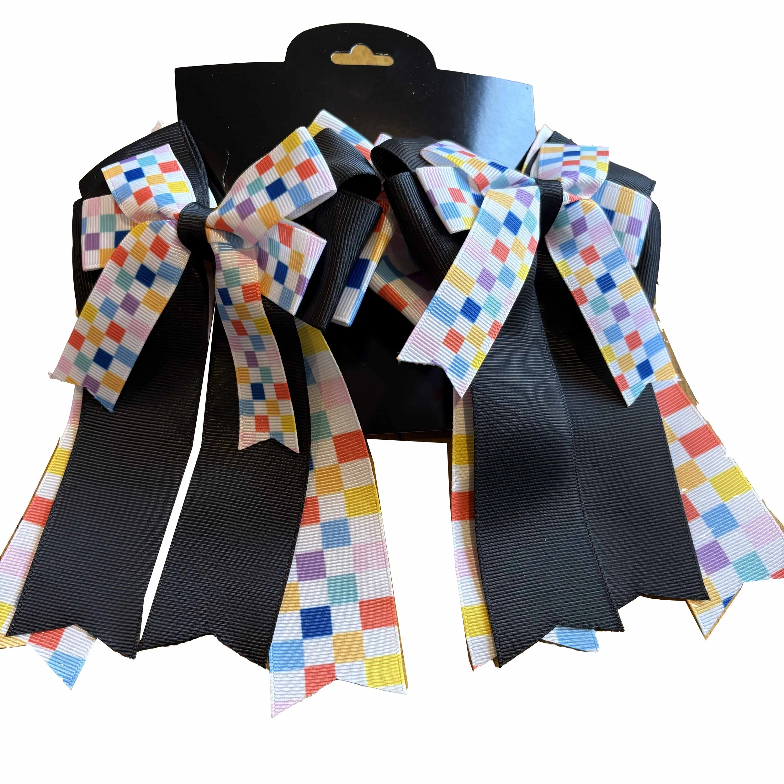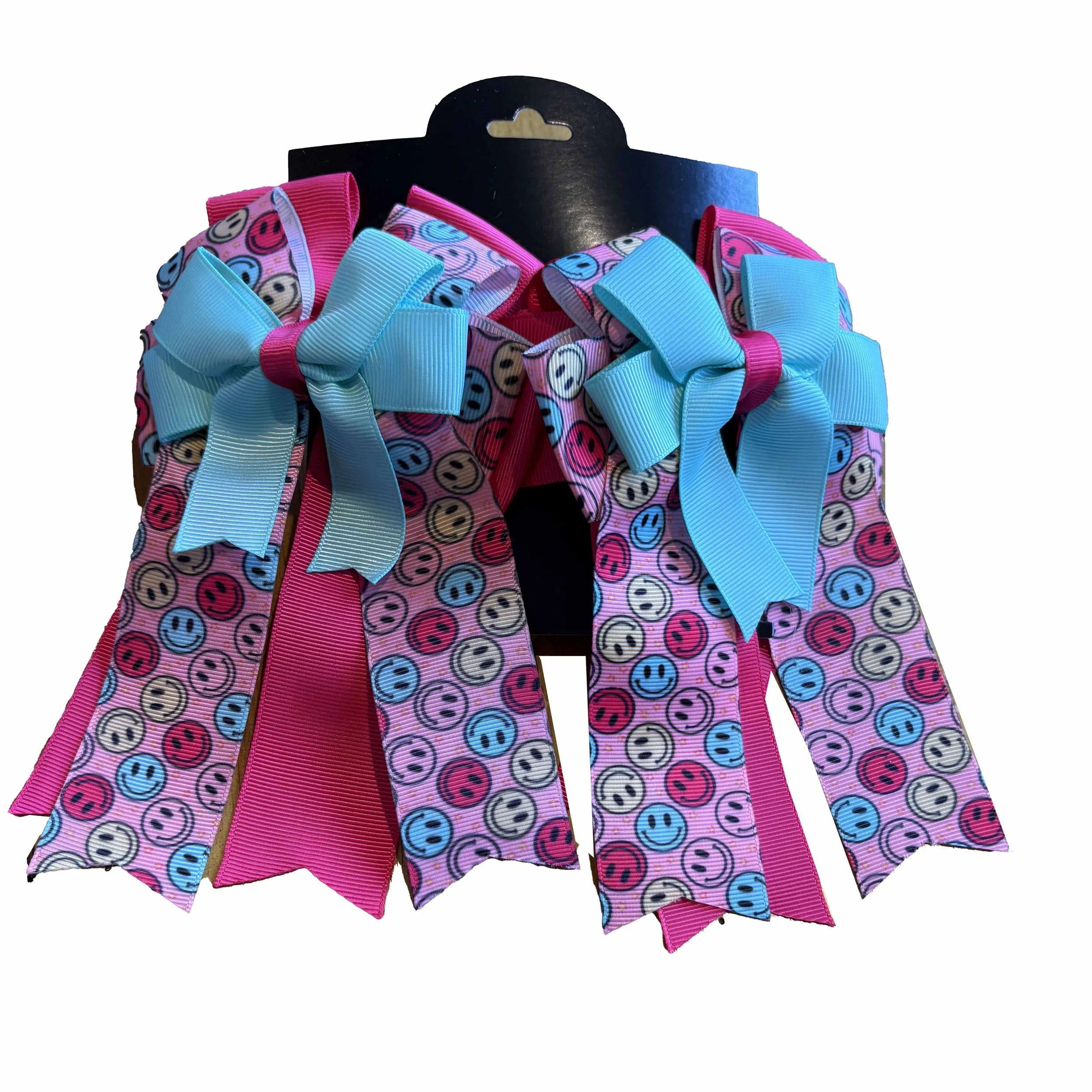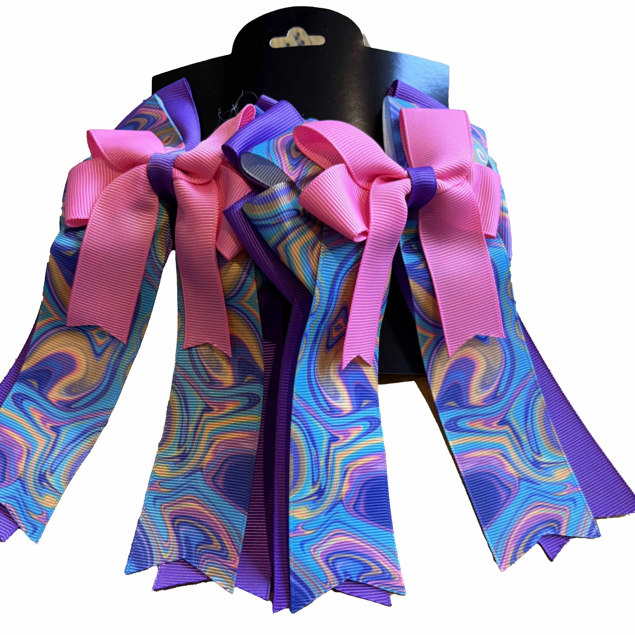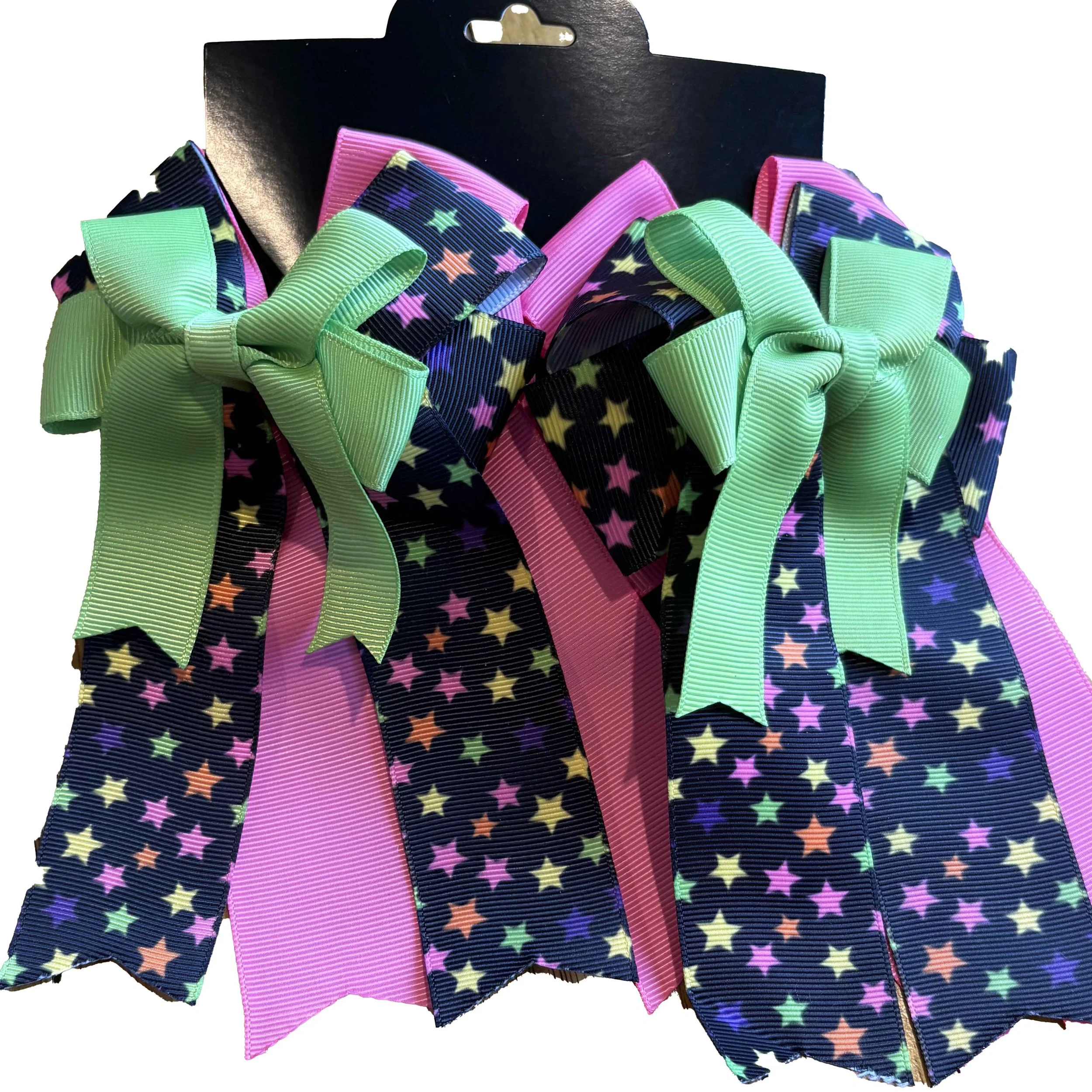 Pony perfect! The finishing touch for braids and pigtails, in a wide array of colors and patterns! Ribbon tails vary in length.